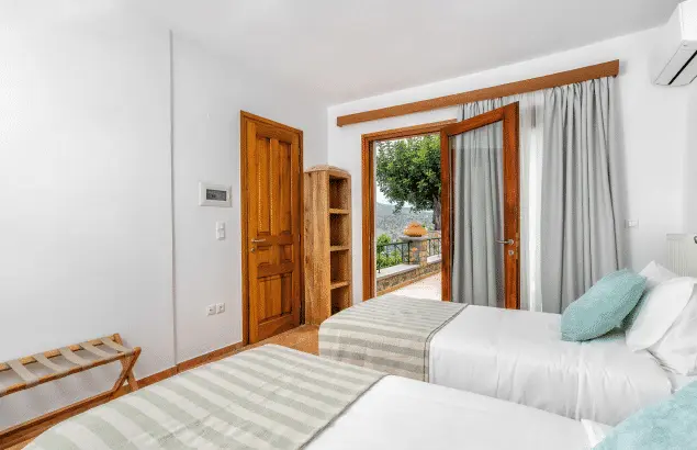 Separate unit attached to the villa, double bed (180 cm), sofa bed (160 cm) + single sofabed Includes equipped kitchen, shower, toilet, hairdryer, air conditioning, washing machine.